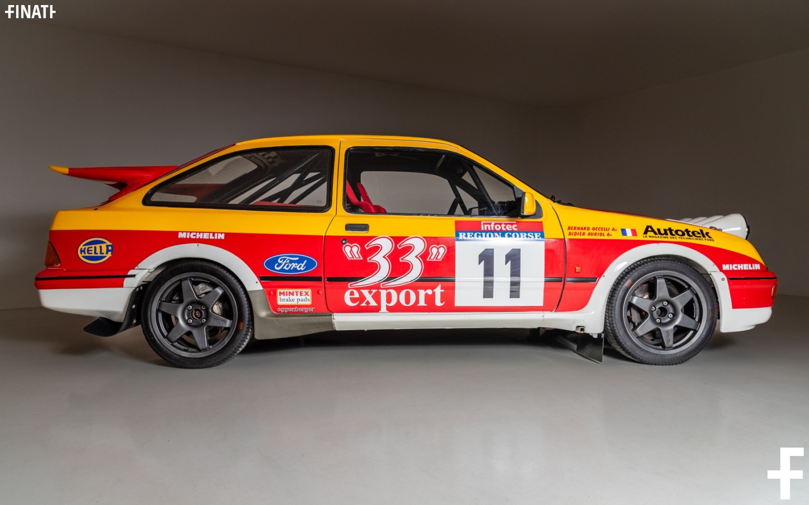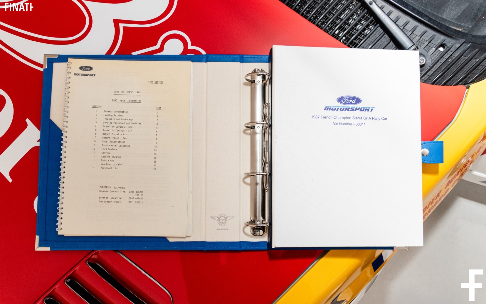 Vettura prodotta nel Dicembre 1986 e venduta dalla Ford Motorsport Company Limited nel gennaio del 1987 alla Ford France SA per la scuderia R.E.D. UK con targa 6985 PM 92 con la quale Didier Auriol corse e vinse il campionato Francese del 87. Alla fine della stagione 1988 il telaio numero 30311 fu rispedito a Red UK. Ricostruita da Pete Doughty, nella stessa configurazione e livrea della stagione 1987 (33 EXPORT) partecipa al Mazda Winter Rally 1991.Pete utilizza il numero di targa inglese C236 HVW della sua auto precedente per partecipare a qualche rally prima di venderla a Fenwick Stuart che fece gareggiare l'auto in modo spettacolare al rally Condroz 1991, sempre con la stessa targa C236 HVW e il colori della stagione 1987 (33 EXPORT). Oggi, la vettura 30311 è in possesso di documenti originali e la targa inglese D299 UUJ. Tutti i documenti originali sono presenti.